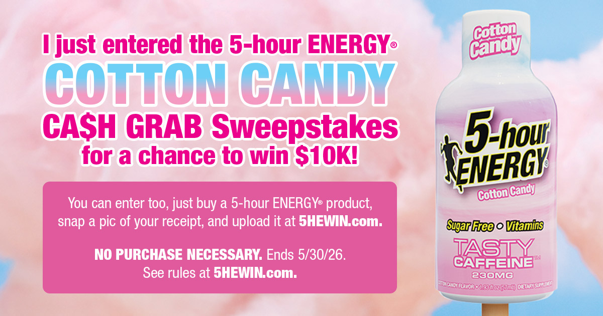 5-hour ENERGY Cotton Candy Cash Grab Sweepstakes